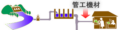 管工機材とは、水廻り・空調廻りの設備機器に取り付けられる機材及び設備機器とその他機器とをつなぐ配管機材を総称します。単なる設備機器だけでは、その機能を全く発揮する事は出来ず、管工機材と合体する事により初めて機器として社会生活に頁献できるのであります。